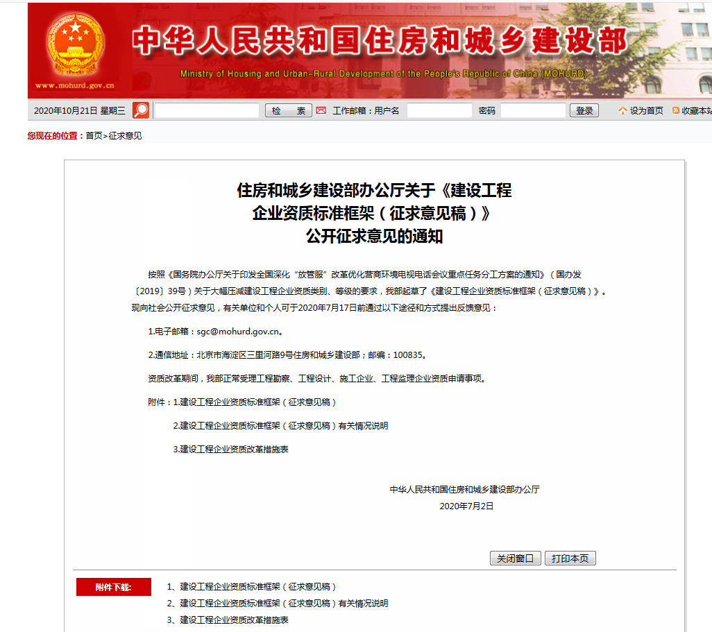 ▲摘要:近日,住建部官網正式公布了關于《建設工程企業資質標準框架(征求意見稿)》公開征求意見的通知。 其中: 消防設施施工專業承包資質和其他幾項資質合并為通用類專業承包...
